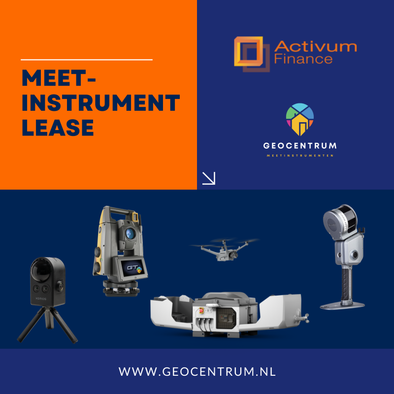 Soms wilt u investeren in nieuwe apparatuur, maar uw bedrijfskapitaal liever niet vastzetten. Daarom biedt Geocentrum, in samenwerking met Activum Finance, een flexibele leaseoplossing voor meetkundige apparatuur. Zo beschikt u direct over de nieuwste technologie, terwijl u de investering verspreidt over vaste maandtermijnen.
